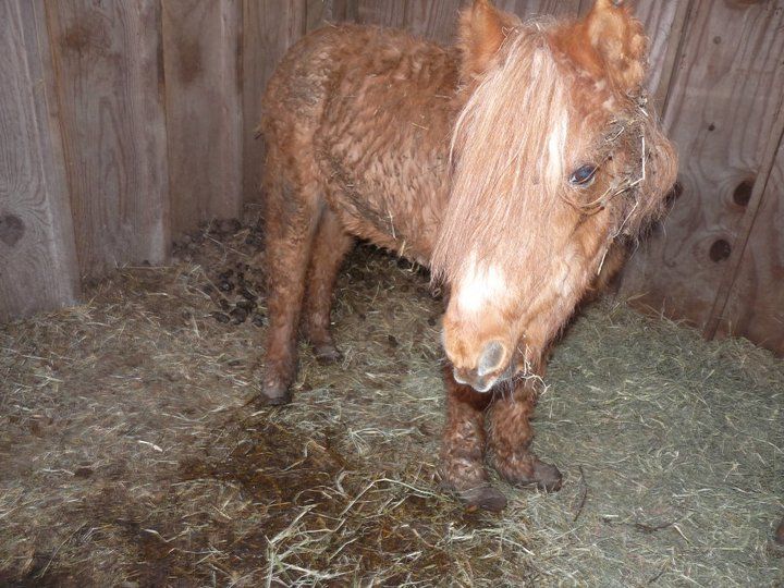 At some point in February 2011, I went to Wittman to look at a carriage that was for sale. When I arrived, I did not realize the person that was selling the carriage was not home, but I did notice Bonnie in a shed in a distance. I went closer and what we saw next I will never forget. Bonnie was covered with feces matted hair curled hooves. You could not tell that she was a equine species. When the owner arrived home, I asked her about Bonnie, and she said the pony should’ve been dead years ago. I gave her my card, that I have a horse rescue, and had hoped she would do the right thing by the pony but she didn’t. I contacted the Humane Society. They went out, said that she has shelter and shelter, and that she’s fine. That is when my crusade for justice began. I filed a complaint with Talbot County Animal Control, which then turned into charges for neglect to be filed against Bonnie's owner. When the court date arrived, the owner was given probation before judgement, ordered to surrender Bonnie to Halo's Haven and fined court costs of $57.