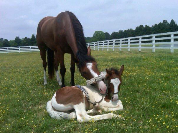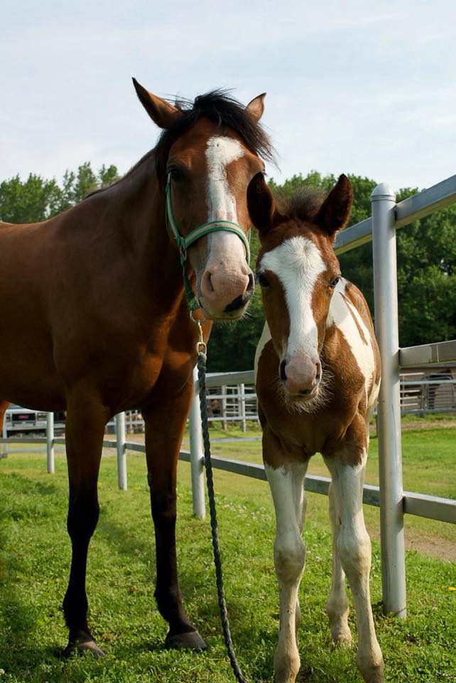Dutchess and Spirit were rescued from a Camelot Auction in New Jersey. Dutchess (Bay) and Spirit (foal) were posted to the online kill lot page, pictured in the kill pen with a lead rope hanging from the mare’s face. Dutchess was untouched with her newly born foal glued to her side. Spirit was a month old when he was thrown into the pen. The only way to handle or catch Dutchess was to grab hold