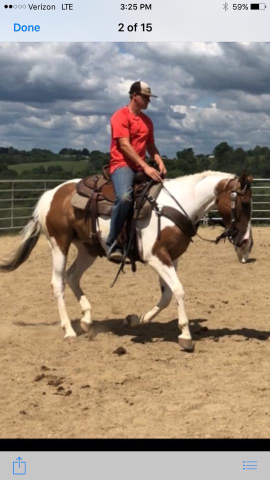 After his quarantine at Penny's farm he came to Halos Haven farm . Twilight was unbroken and needed a trainer that could train a six year old Kevin Raber from Ohio came and started the venture. Thanks to Kevin's training, Twilight went from being an unbroken horse bound for slaughter and became a calm, responsive mover under Western and English saddle, bomb proof on the trails and a rockstar in the ring. It took about 2 years from the day we rescued Twilight until the time we placed him in his forever home. It's a long expensive road to rescue. He looks amazing .